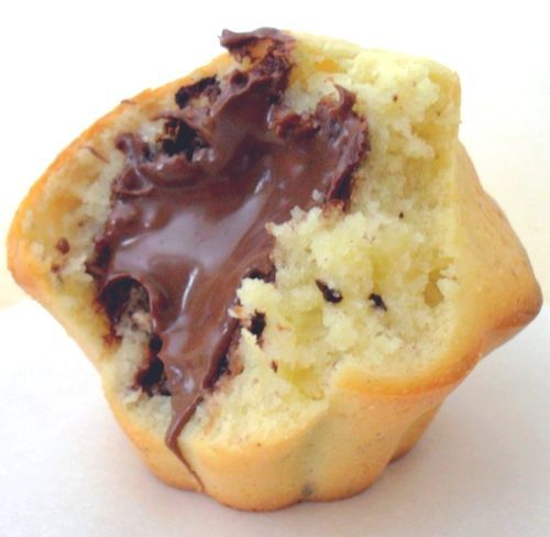 Dans les moules à muffins, disposez la pâte, environ à moitié, puis à l’aide d’une cuillère à pomme parisienne façonner des boules de nutella et les incorporer à la pâte. Versez le restant de la pate par-dessus. Puis enfourner au four.
