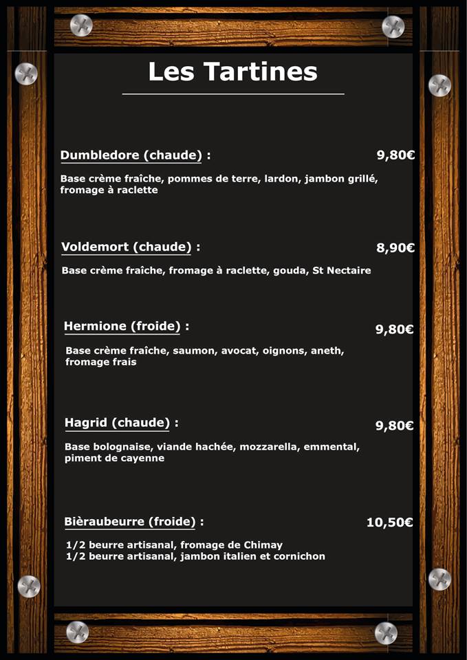 Situez pas très loin de la place ducale, le restaurant offre une ambiance familiale ou petits et grands se retrouveront dans l’univers d’Harry Potter. Le thème de la série est très bien représenté, avec quelques petits décors placés dans tous le restaurant. (En espérant que le restaurant qui est ouvert depuis le mois de mai offrira à tous les fans de la saga Harry Potter encore plus de décors inspirés des films et des livres). La carte du menu offre également un clin d’œil avec son intitulé « La carte des maraudeurs », ou vous pourrez retrouver des plats au nom des plus célèbres personnages et objets de la saga.