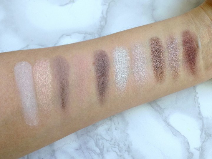 La palette taupe propose des teintes à la fois chaude et froide dans les nuances de taupe, qui va permettre de faire un maquillage à la fois discret mais lumineux. La palette se compose de 10 teintes inspirées des tissus nobles ( Finit mat, satiné, perlé,mat pailleté). Ma teinte préférée est la « Wrapped in silk » qui est un joli mauve pailleté.